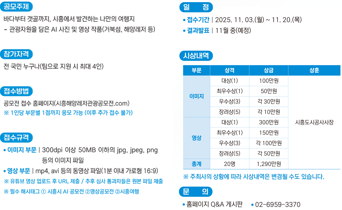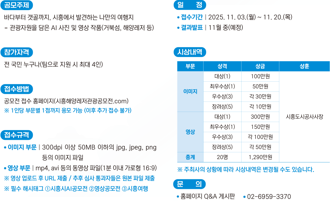 시흥 해양레저관광 AI 이미지·영상 공모전 / 문의 : 02-6959-3370